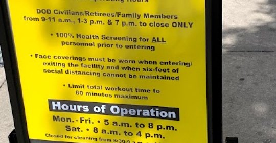 Fantastic experience: Quality fitness center on base with lots of amenities. Sauna is not open at this time but most other services are. Clean and spacious was a pleasure to utilize this on base.