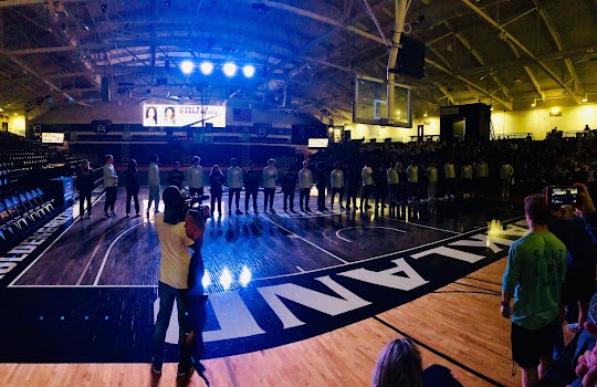 Experiencia positiva: My daughter's Choir is here to sing the National Anthem. First time here, great gym, small seats. But definitely enjoyable. Love the floor. Oh I can't forget. Get here early for games because parking is limited. It is a college campus so you can find other parking but will have to walk like we did.