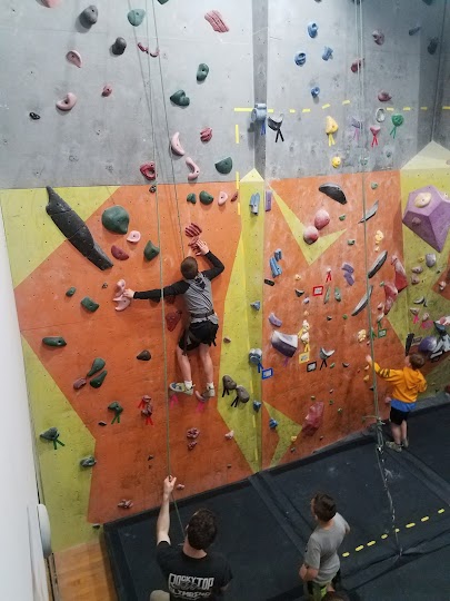 Experiencia fantástica: This is the first place I ever went bouldering, and now climbing is one of my favorite things! People here, both the staff and the other climbers, were very friendly to me as a newcomer and helped me get used to the scary feelings of falling! The climbing problems are always varied and fun challenges. This is a great place to bring new and experienced climbing friends, just be sure to note the busy hours because it can get kind of hectic when classes are going on in the early evening. FOR NEWCOMERS TO CLIMBING: bouldering is climbing short (13ft here) walls with no harness or ropes, but with a very safe and thick foam pad at the bottom to catch you when you fall. Rocky Top is a bouldering gym and does not offer top rope or other climbing except in very specific circumstances - they do have a top rope and a silk hanging from the ceiling, but they’re always pulled to the side and I’ve never seen them in use.