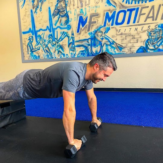 Experiencia fantástica: I started at a motifaith a couple of months ago, and it's been an amazing experience. My trainer Ryan is constantly motivating me to achieve my goals. If you're looking for a trainer who cares about you and pays attention to you to help you succeed in the gym Ryan is the perfect fit. Dealing with back problems and a broken foot make workouts difficult sometimes but Ryan is constantly there to make changes where I may need them. The thing that makes Motifaith stand out from other workout places is the trainers and owner at Motifaith truly care about your goals and work with you to achieve them. It's such a fun and easy environment. I highly recommend it for anyone looking for a place to workout or get motivated.