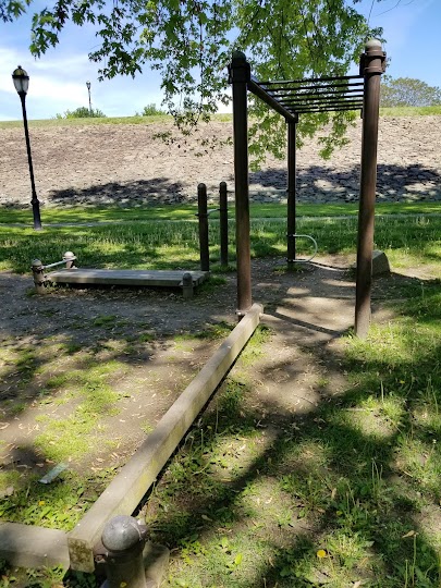 Experiencia positiva: This place is always available. Even on hot days, the breeze by the river makes it comfortable. The equipment is good quality, but can be pretty dirty. I recommend wearing gloves. The park is lacking some kind of turf. On a hot day, the dirt dries out and kicks up dust. On a wet day, your feet dig into the ground, slightly.